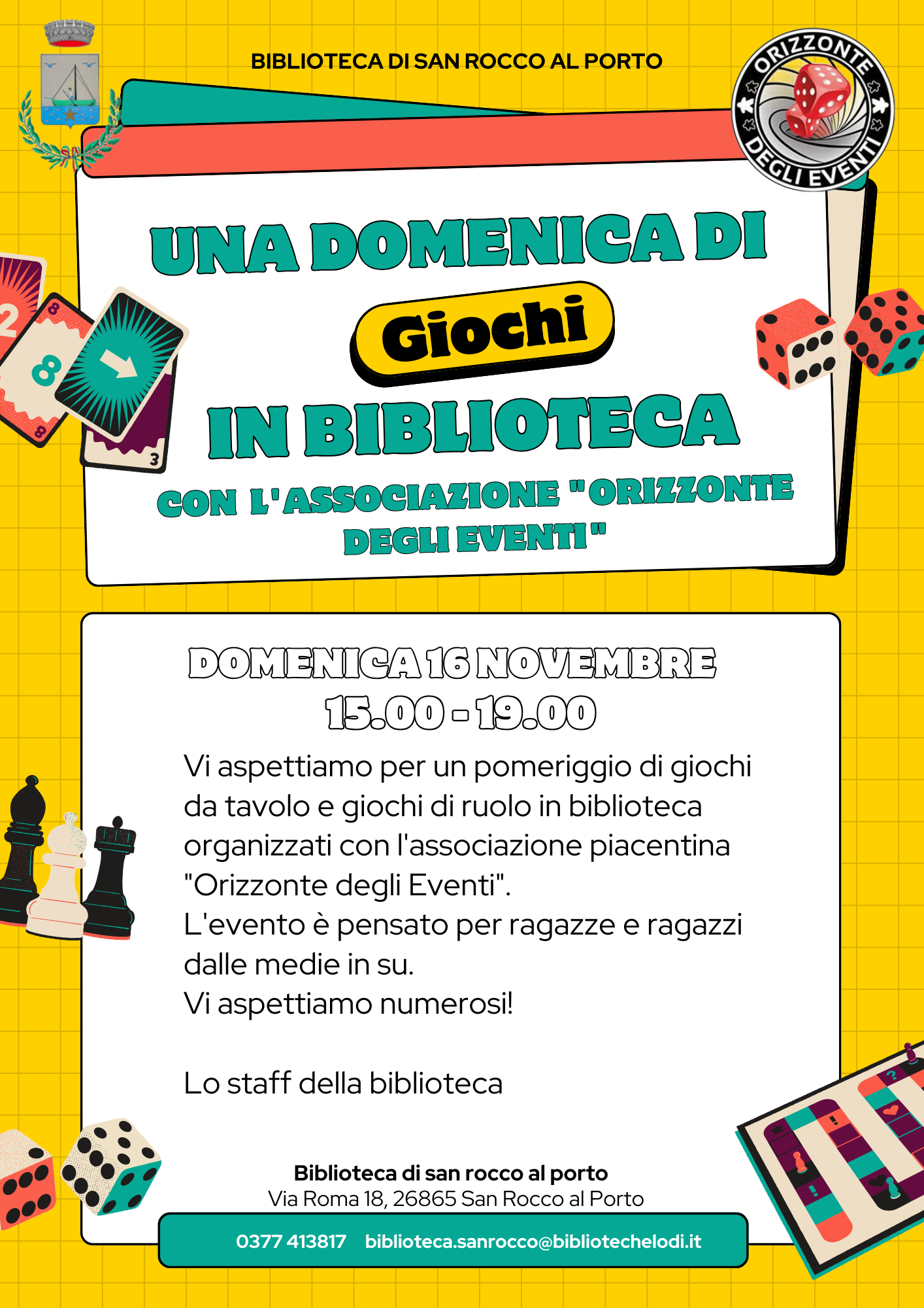 Vi attende un pomeriggio di giochi da tavolo e giochi di ruolo.